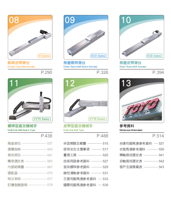 YAMAHAdyadicIAINACHiMOTOMANCORETECVanguardALPHASICKEPSONKawasakiHirataTOYO以及國產等品牌。主要有如下系列產品:電缸、滑臺、模組、機械手、工業機器人、直線電機、DD馬達、工業傳感器 、伺服壓機以及非標設備。