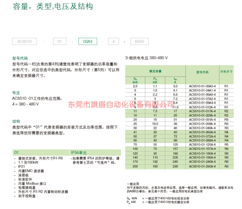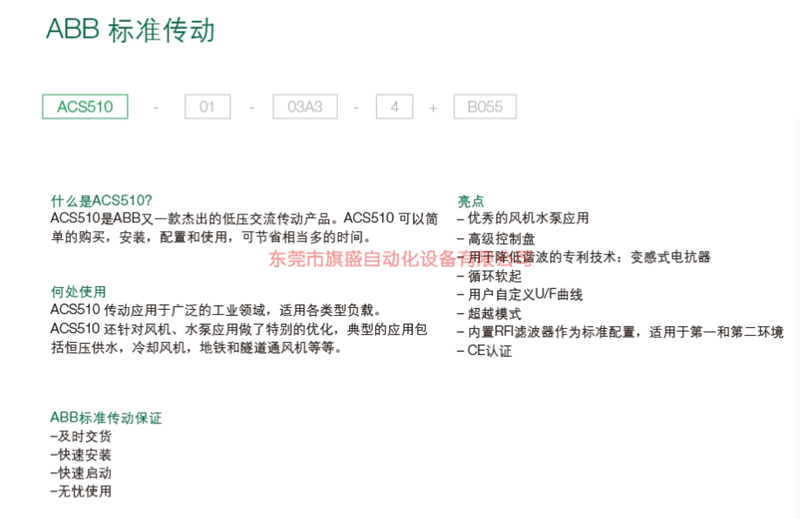 ABB 風機水泵變頻器ACS510-01-125A-4(ACS510系列)原廠現貨直發 東莞旗盛自動化設備有限公司
