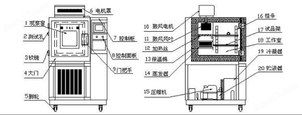 六、制冷系統(tǒng): 1.壓縮機(jī):原裝法國泰康機(jī)組; 2.制冷方式:?jiǎn)危p)機(jī)制冷(風(fēng)冷型); 3.冷凝方式:強(qiáng)制風(fēng)冷卻; 4.制冷劑:R404A、R23(環(huán)保型); 5.系統(tǒng)管路均作通氣加壓48H撿漏測(cè)試; 6.加溫、降溫系統(tǒng)*獨(dú)立; 七、保護(hù)系統(tǒng): 1.風(fēng)機(jī)過熱保護(hù); 2.整體設(shè)備欠相/逆相保護(hù); 3.制冷系統(tǒng)過載保護(hù); 4.制冷系統(tǒng)超壓保護(hù); 八、設(shè)備使用條件: 1.環(huán)境溫度:5℃~+28℃(24小時(shí)內(nèi)平均溫度≤28℃) 2.環(huán)境濕度:≤85%R.H 3.操作環(huán)境需要室內(nèi)通風(fēng)良好,機(jī)器放置前后左右各80公分不可放置東西;