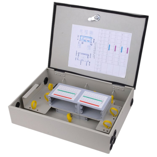 光纖分纖箱,光纖分線箱,光纖配線箱,光纖樓道箱,樓道配線箱,光纜分纖盒,能安裝72/96個光纖適配器如SC,FC,ST,LC和6/8條12芯束狀尾纖,可以壁掛、抱桿鐵皮冷軋板玻璃鋼材質室外防水性強 ,防老化、防曬、防雨。 72芯/96芯ODF光纜交接箱 光纖配線箱|分線盒|交接盒 壁掛配線箱(可裝ST,SC,FC,LC.適配器)通用型 為適應市場需求設計的分纖(分光)箱,分為直熔型、適配器型光纜分纖箱和盒式、插片式光纜分光分纖箱。箱體材料采用優質冷軋鋼、不銹鋼或復合材料。主要適用在FTTH接入方式下的樓道或戶外分光點。適用于FTTH的一級或二級分光,二級分光優勢特別明顯。并且引入了旁路纖接續功能。 直熔型體積小巧,配置多樣,特別適合一級分光模式下,放置在樓道、弱電井等場合。適配器型分纖箱除具有分配線功能,還預留分光功能,可靈活配置各種不同規格的盒式光分路器。 上聯光纜:容量16-32光纜出纖:蝶形光纜接SC蝶形光纜尾纖或快速連接頭至用戶端。進纜方式:室內上進/下進、室外下進。 分纖(分光)箱:適用插片式適配器直接安裝。 插片式光分路器箱,采用模塊化設計,具有二個到四(八)個擴展槽位,將光分插片插入插槽即可。通過靈活的增加光分插片數量來實現端口的擴容,不同容量的光分模塊具有通用性和互換性。另配置熔纖盤用于上聯光纜的接續。尾纖的存儲采用用適配器固定,實現了無跳接。箱體材料采用優質冷軋鋼或不銹鋼。產品主要適用在FTTH接入方式下的樓道分光點。適用于FTTH的一級或二級分光,二級分光優勢特別明顯。 光分插片靈活的配置方式,限度為運營商節約初期投資。 光分插片集光分與適配器為一體,極大的方便了工程施工,也減少了常規盒式光分路器因施工或保管不當造成的損壞。1:4和1:8采用一個插槽,1:16占用2個插槽,1:32占用4個插槽。 尾纖的存儲采用SC適配器固定,客戶未開通時,上聯尾纖在此停泊,實現了無跳接。 上聯光纜:容量24芯,常規容納2根光纜進入(可選擇特殊設計進入4-6根纜,特殊要求訂貨時需說明)。蝶形光纜出纖:蝶形光纜接SC蝶形光纜尾纖或快速連接頭至用戶端,32(64)芯。進纜方式:室內上進/下進、室外下進。 箱體內部采用翻轉式結構,翻轉板上方區域用于外部引入光纜與用戶引入光纜對接。 翻轉板下方區域用于各類光纜、尾纖走線以及外部引入光纜成端熔接等功能,其中支持外部引入光纜上下方進線要求,。 箱體內部采用翻轉式結構,翻轉板上方區域用于外部引入光纜與用戶引入光纜對接。 翻轉板下方區域用于各類光纜、尾纖走線以及外部引入光纜成端熔接等功能,其中支持外部引入光纜上下方進線要求。 產品簡介: 產品概述: 安裝在室外墻壁、電桿等位置,可以方便完成光纜的接續和分配功能,并能滿足光分路器的安放而實現分光功能。 產品特點: 1.適合室外墻壁的掛墻式、電桿抱箍式供選擇。 2.箱體內放置插片式分光器,可安裝2個或4個1分8插片式分光器。 3.集熔接、分光、配線于一體,可實現光纜的直熔和接續。 4.上下均可進纜,操作方便,結構合理。 5.光纜固定、接地方便,箱體內有足夠的布線 特點及結構說明: 1、箱體采用PC/ABS合金材料制作,使用壽命達到20年以上. 2、雙層結構的設計,上層為光分器配線層,下層為光纖熔接層. 主要技術參數(符合YD/T988-2007通信光纜交接箱要求) 1:工作溫度:-40℃~+70℃; 2:儲存溫度:-40℃~+70℃; 3:工作濕度:≤90%(+30℃時); 4:大氣壓力:62Kpa~106Kpa; 5:絕緣電阻:接地裝置與箱體金工件之間的絕緣電阻不小于2X104MΩ/500V(DC); 6:耐電壓:接地裝置與箱體金工件之間的耐電壓不小于3000V(DC)/1min; 7:插入損耗:IL≤0.3dB (PC型); IL≤0.3dB (APC型); 8:回波損耗:RL≥40dB (PC型);RL≥50dB (UPC型);RL≥60dB (APC型); 9:互換性:≤0.2dB。 10:接地耐電壓水平不小于3000V(DC)/1min不擊穿,無飛弧。