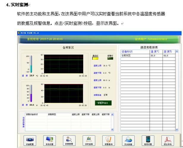 溫濕度采集監測報警軟件具備溫濕度傳感器的數據采集、數據存儲、數據分析、溫濕度上下限報警、短信報警提醒等功能;采用圖形化顯示界面,提供柱狀圖、實時曲線、歷史曲線等顯示手段,使用戶觀察數據更加直觀和方便。