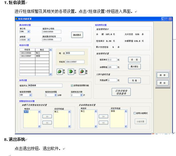 本系統增加了短信報警功能,任何一點的溫度或濕度超出設定的報警閥值,立即通過短信方式發送到指定的手機上,報警手機臺數無數量限制。