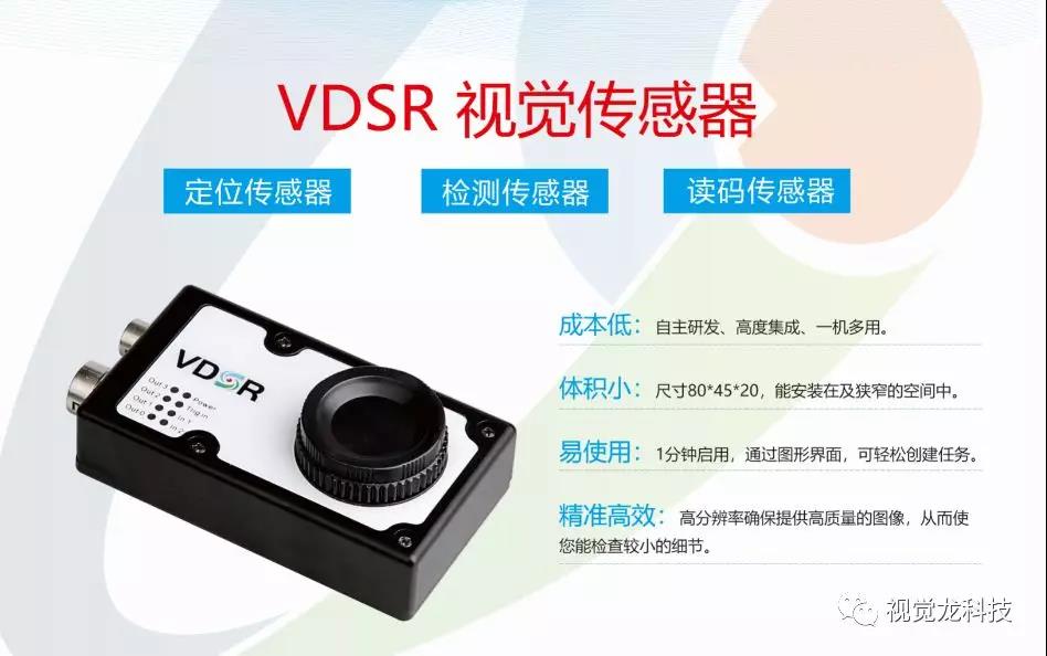 嵌入式產(chǎn)品【VDSR視覺傳感器】:自主研發(fā)、高度集成、一機(jī)多用。可以讀取芯片、塑料、陶瓷、玻璃或金屬上的二維碼;可解決有無檢測、錯位檢測、漏檢、外觀檢測等;還可與桌面型機(jī)器人做定位引導(dǎo),達(dá)到了亞像素重復(fù)精度。