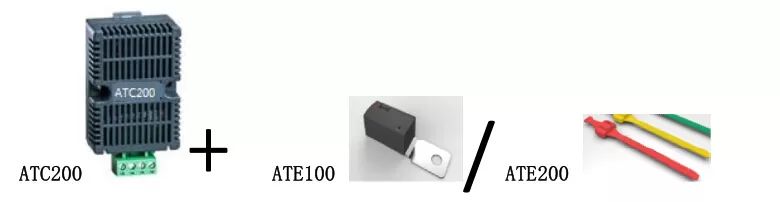 說明:ATC200 無線溫度收發(fā)器最多可連接 12 路有源無線溫度傳感器, ATE100(螺栓式安裝,主要用于電纜/銅排等螺絲固定的搭接點(diǎn))和 ATE200(表帶式,主要用于斷路器觸頭等接點(diǎn)捆綁安裝,因安裝較 ATE100 更方便,電纜/銅排等搭接點(diǎn)也常選用)。僅限于接收同一臺(tái)開關(guān)柜內(nèi)有源無線溫度傳感器溫度信號(hào),如柜內(nèi)無線溫度傳感器數(shù)量大于 12 點(diǎn),需配置多個(gè)收發(fā)器。)