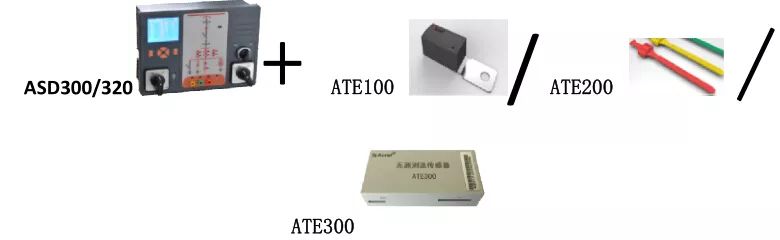 說明:ASD300/320 智能操控裝置最多可連接 12 路無線溫度傳感器,無源(CT 取電)方式為 ATE300(捆綁式安裝),有源(電池供電)方式為 ATE100(螺栓式安裝,主要用于電纜/銅排等螺絲固定的搭接點(diǎn))和 ATE200(表帶式,主要用于斷路器觸頭等接點(diǎn)捆綁安裝,因安裝較 ATE100 更方便,電纜/銅排等搭接點(diǎn)也常選用)。